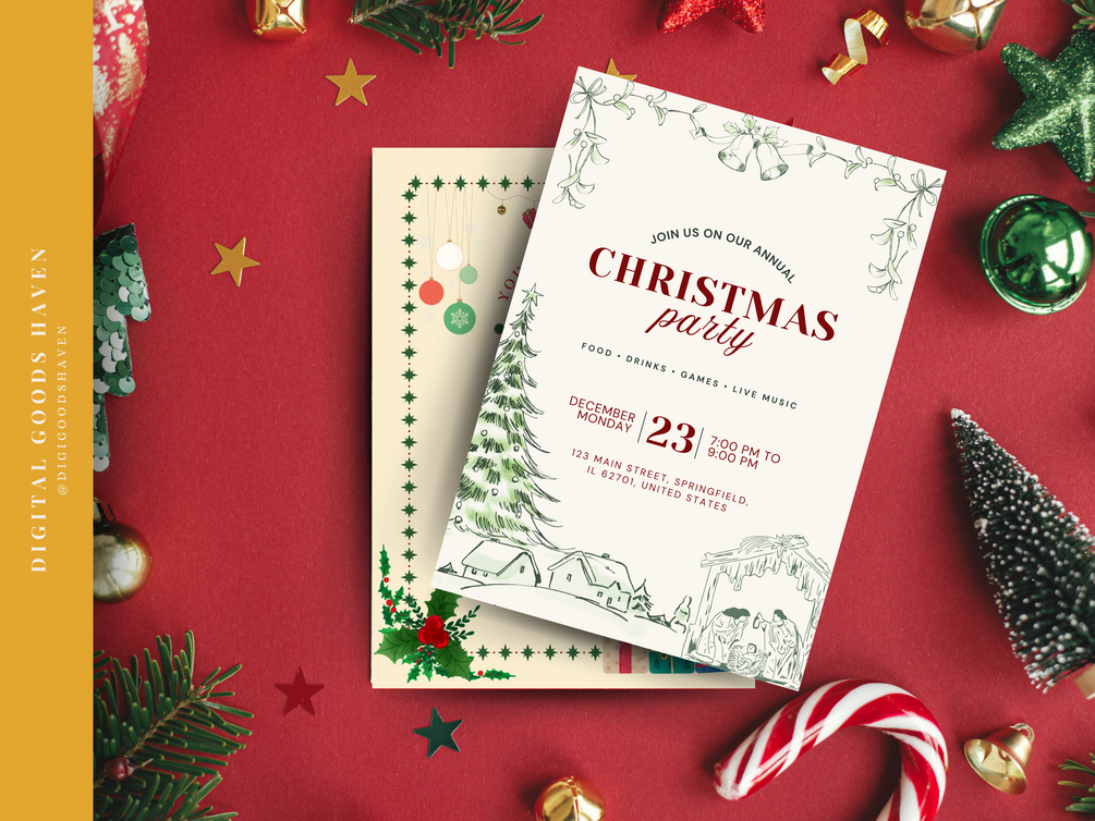 Bring the holiday spirit to life with this best Christmas Event Invitation Template Package! Featuring a variety of designs, from playful and casual to formal and luxurious, this bundle has everything you need to set the tone for any celebration. Whether you're hosting an intimate family dinner, a grand workplace party, or a community gathering, these templates cater to every occasion.