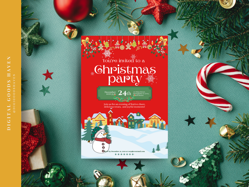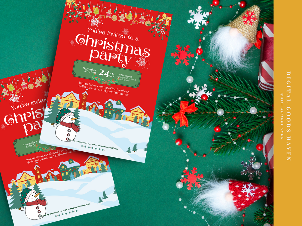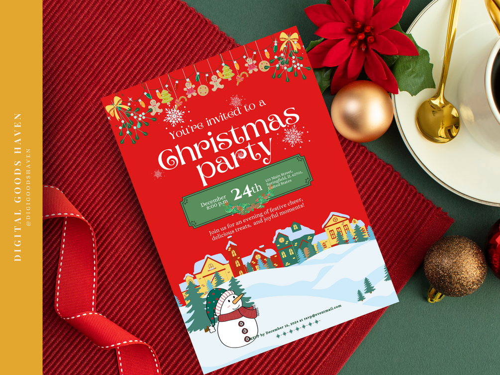 Celebrate the true spirit of the season with this heartwarming invitation template, designed for community gatherings and neighborhood celebrations. Featuring festive elements that evoke togetherness and tradition, this design is perfect for events like church socials, potlucks, or local holiday get-togethers. It’s a delightful way to invite everyone to share in the joy of Christmas and create lasting memories.