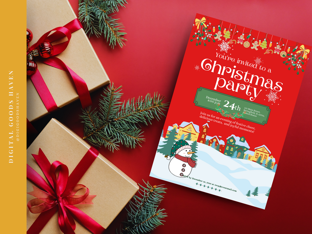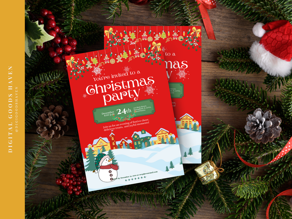 Celebrate the true spirit of the season with this heartwarming invitation template, designed for community gatherings and neighborhood celebrations. Featuring festive elements that evoke togetherness and tradition, this design is perfect for events like church socials, potlucks, or local holiday get-togethers. It’s a delightful way to invite everyone to share in the joy of Christmas and create lasting memories.